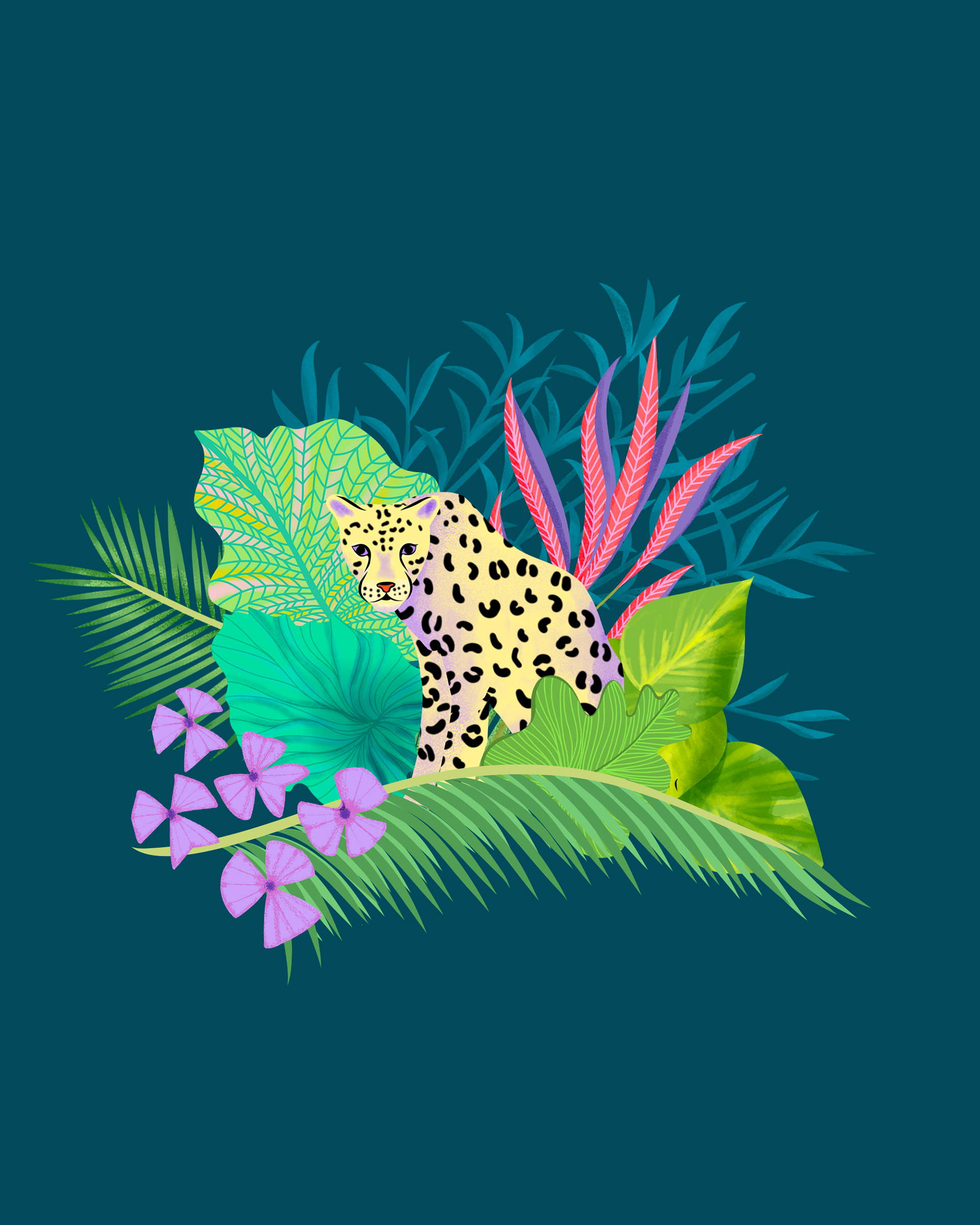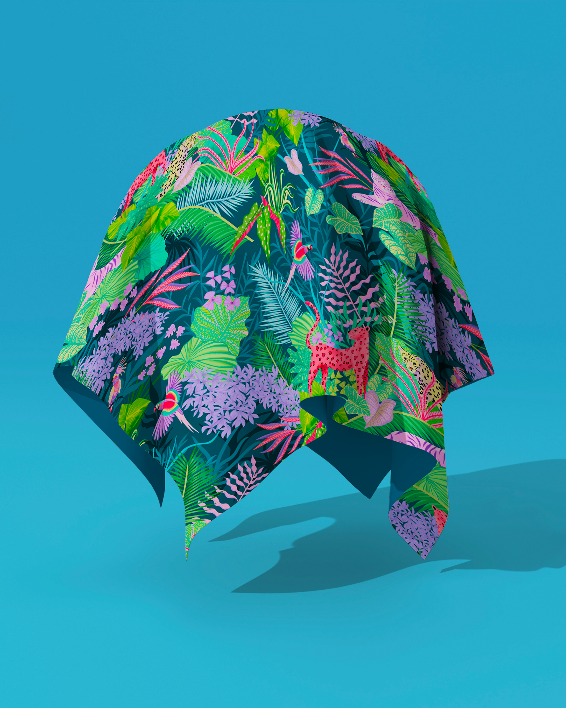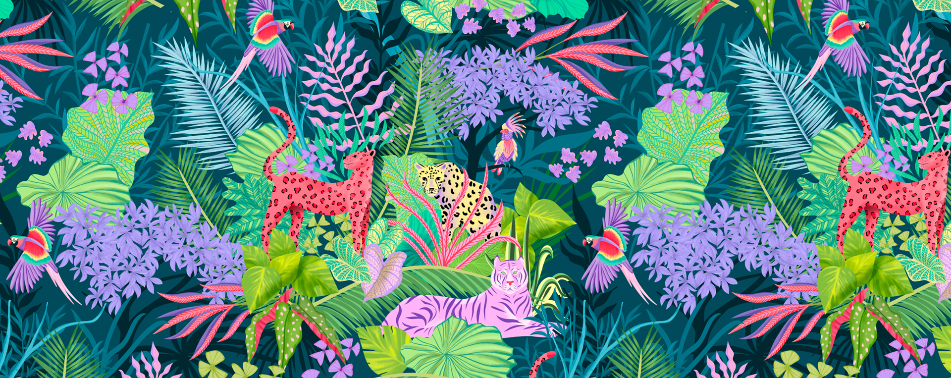 Une jungle haute en couleurs, vibrante et foisonnante, où une faune inattendue se dévoile au cœur d’une végétation luxuriante. Pensé comme un motif riche et immersif, cet univers graphique invite à l’évasion tout en apportant une touche audacieuse et joyeuse.